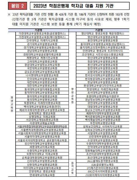 □ 교육부(부총리 겸 교육부장관 이주호)와 한국장학재단(이사장 배병일)은 2023학년도1학기 학자금 대출 신청을 1월 4일(수)부터 접수한다. ㅇ 학자금 대출 신청은 학생 본인의 전자서명 수단을 사용하여 한국장학재단누리집(www.kosaf.go.kr) 또는 이동통신 응용프로그램(모바일 앱)을 통해 가능하며, 등록금 대출은 4월 26일(수)까지, 생활비 대출은 5월 18일(목)까지신청할 수 있다.