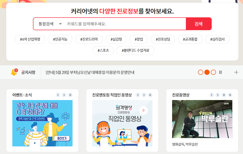 - 진로동영상 및 진로교육자료를 통한 진로탐색 제공