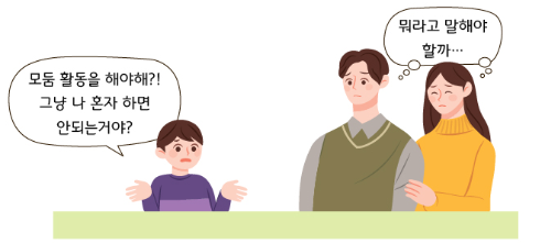 엄마(아빠)도 친구들과 같이하는 것보다 혼자 하는 게 더 편할 때가 있어~ 그런데 혼자 하는 것보다 협동의 재미를 느끼면 함께하는 게 더 즐거워져. 처음엔 조금 불편하고 어렵더라도 같이 연습해보자!