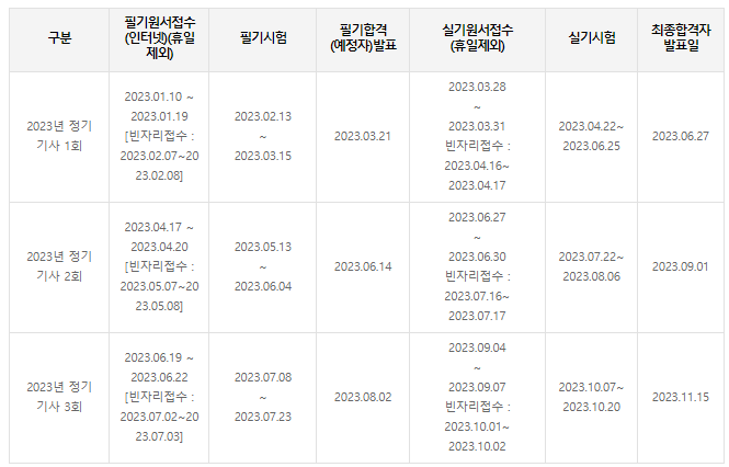 3. 시험 일정은 종목별, 지역별로 상이할수 있음