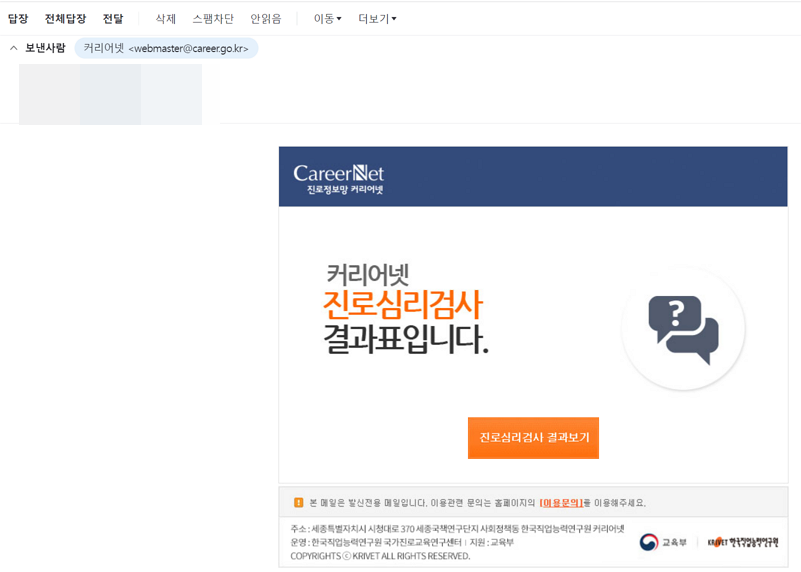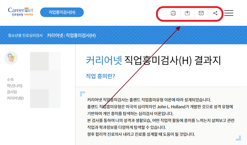 그래서 오늘은 커리어넷의 심리검사 결과를 공유하는 방법을 알려드릴까 합니다.